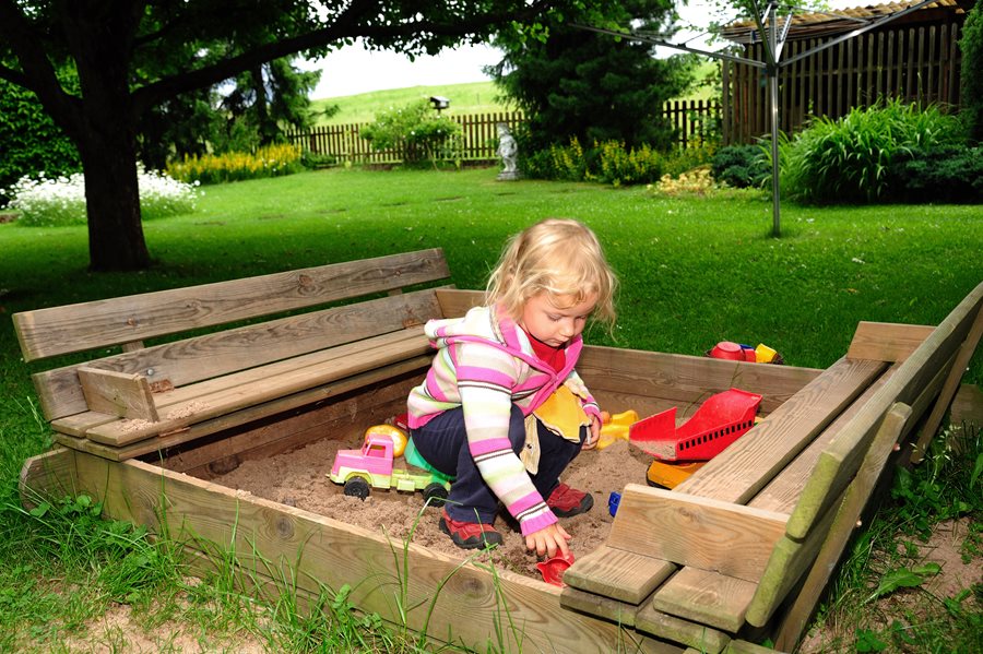 建设一个正方形或长方形的后院沙箱是相当简单的。最重要的考虑是沙箱的位置。网站必须有良好的排水和部分阴影最好提供保护,免受有害紫外线,但仍允许太阳干湿砂后下雨了。你也会想要确保沙箱是安装在一个位置你可以看到孩子们在房子。