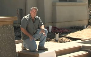 创建一个宽的人行道和阿伯大厅入口这是在前院改造的过程。当花园工匠斯科特·科恩接受项目前院了死去的植物和杂草。它也有一个非常狭窄的人行道通往前门,科恩称之为鸭子走因为它迫使客人走在单个文件行像鸭子的家庭。为了创建一个更宏大的入口,人行道是大大扩大。新开云体育手机登录 与步骤模筑混凝土铺路材料制成的。家的门口还强调壁柱和一个阿伯,标志着进入院子,最终将有一个喷泉。