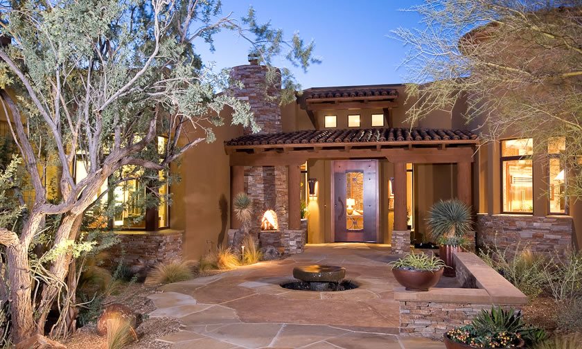 一个好的设计师知道前院不应该只专注于视觉的美,但它应该提供一个完整的感官体验。在入口通往这个家,一个定制的喷泉,穿着一个充满活力的瓷砖马赛克,提供了一个听觉元素。喷泉了参观者的注意,因为他们沿着路径,使它们停下来反思。