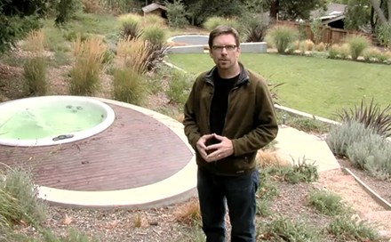 看到如何使用具体座位墙壁和木材甲板上增加一个后院热水浴缸。